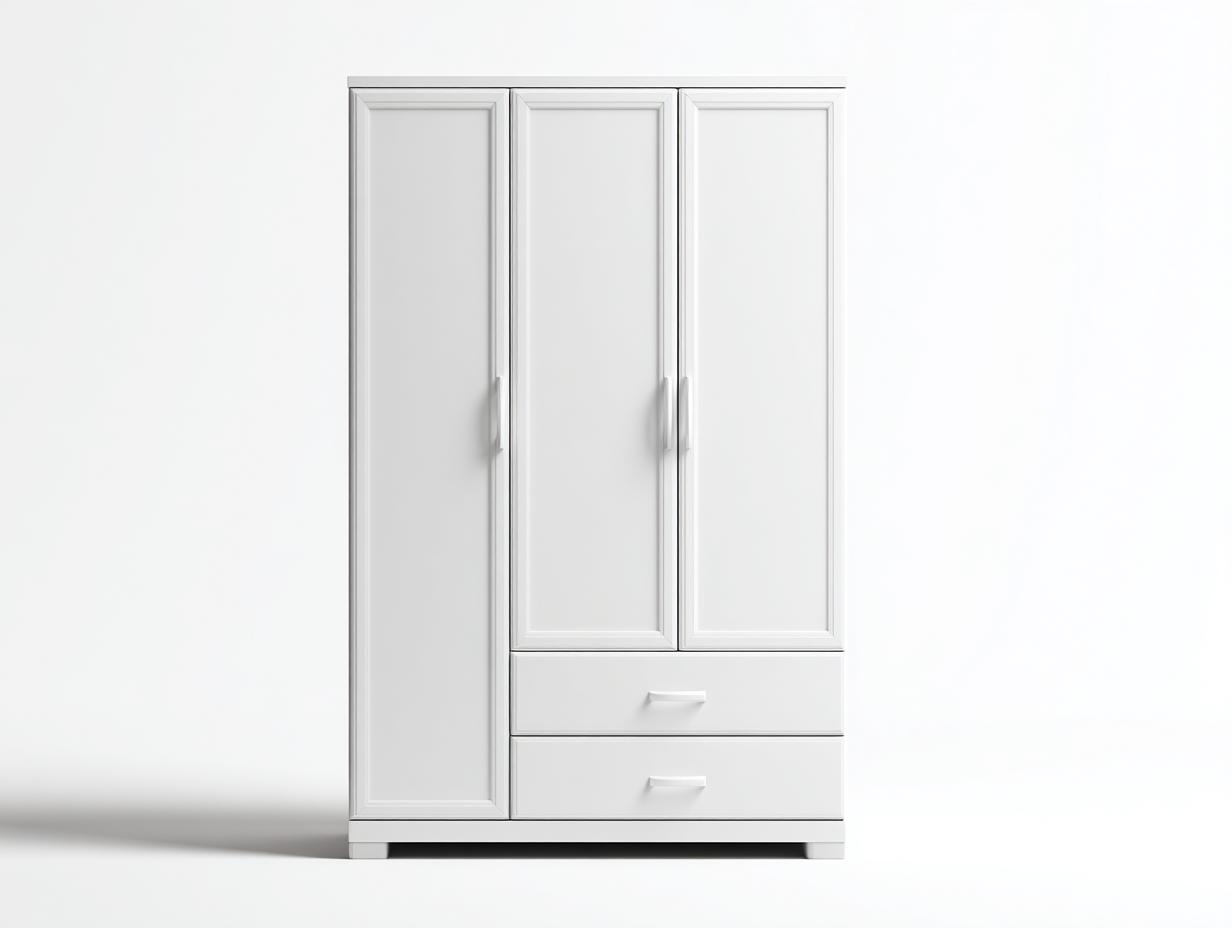 Armoire compacte blanche, idéale pour les chambres de taille moyenne.