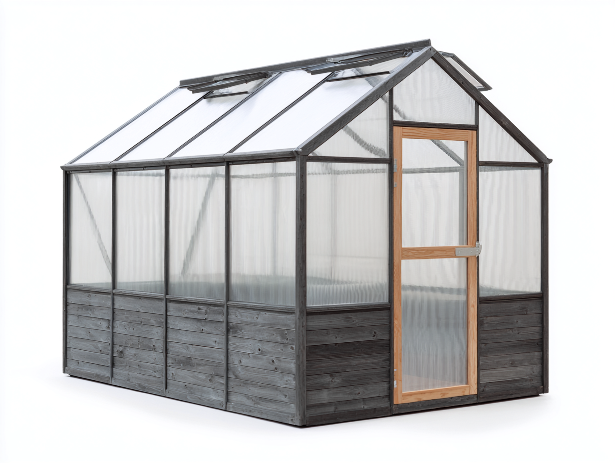 Cette serre de jardin offre un espace équilibré pour cultiver plantes et légumes en extérieur.